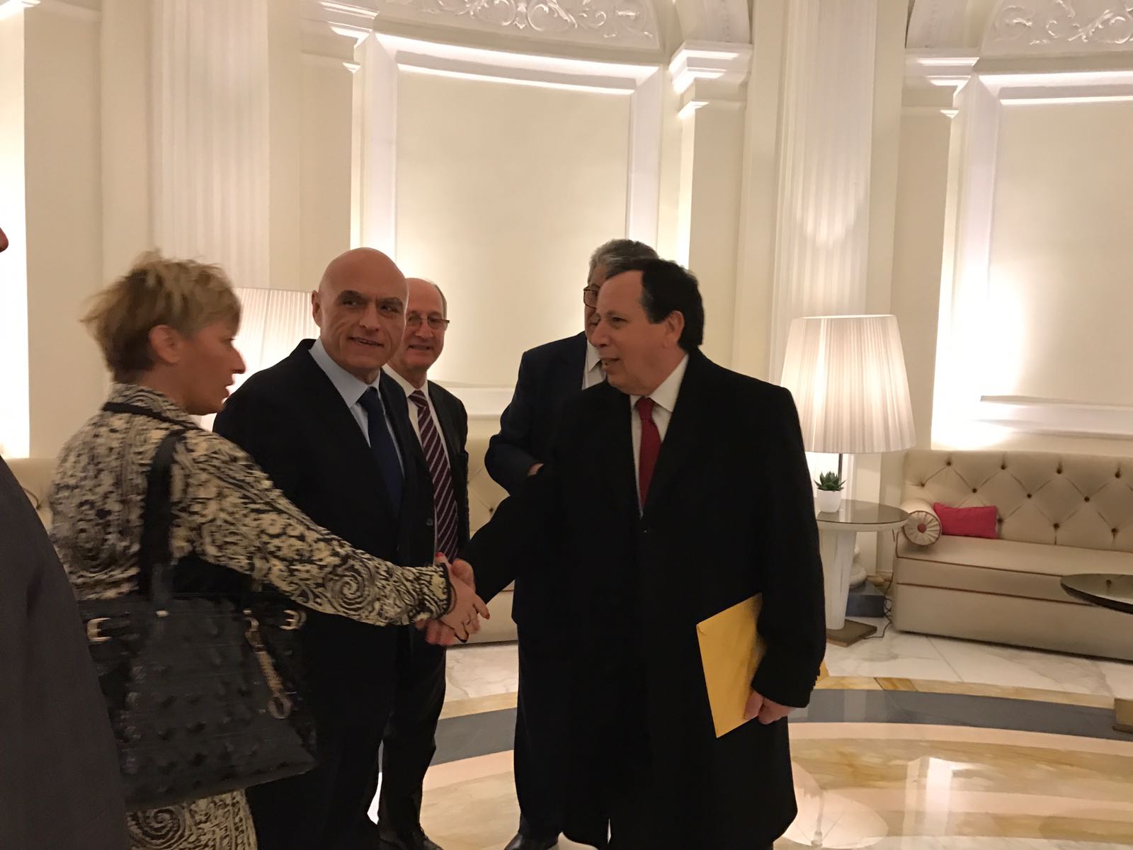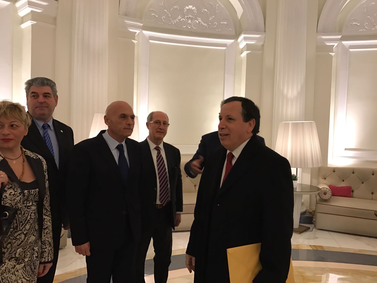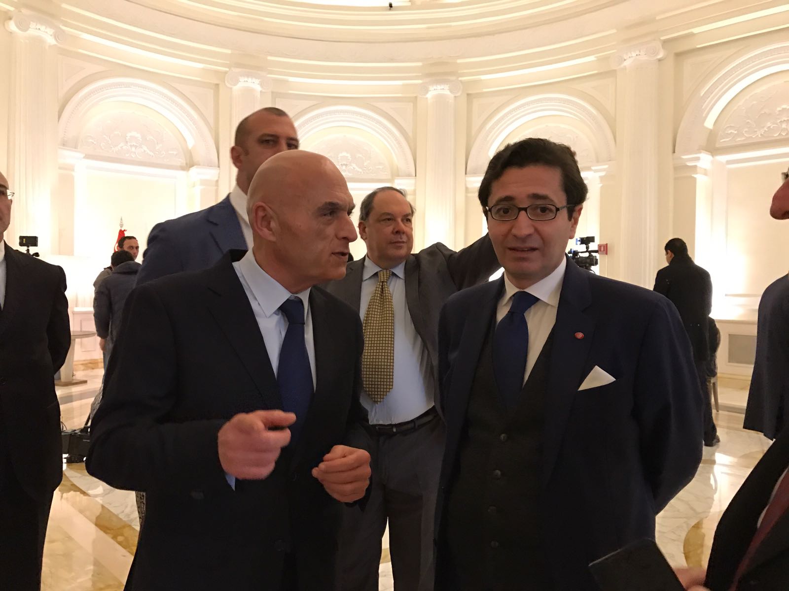 Nell’incontro svoltosi stamattina (09/02/2016), durante la colazione offerta dal presidente della Repubblica tunisina Beji Caid Essebsi, presso il Boscolo Hotel di Roma, erano presenti importanti imprenditori italiani e tunisini e il direttore di Progetto Italia News, Andrea Viscardi, presidente anche del Centro Studi Parlamentare che ha promosso una serie di progetti nell’ambito della sicurezza in Tunisia. Al suo fianco Gianni Barizza, patron di Elettro Light Spa, azienda leader nel settore impiantistica della sicurezza. Barizza e Viscardi, rappresentano la Lithossecurity Spa, l’uno come consigliere di amministrazione e azionista di riferimento, l’altro come direttore generale per la comunicazione e le relazioni istituzionali.
